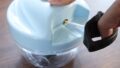 ぶんぶんチョッパーは、ハンドルを引っ張るだけで中の刃が回転し、食材を細かく刻める手動式の調理器具です。